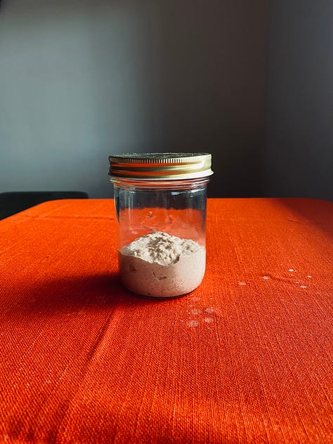 A sourdough starter is fed just flour and water.