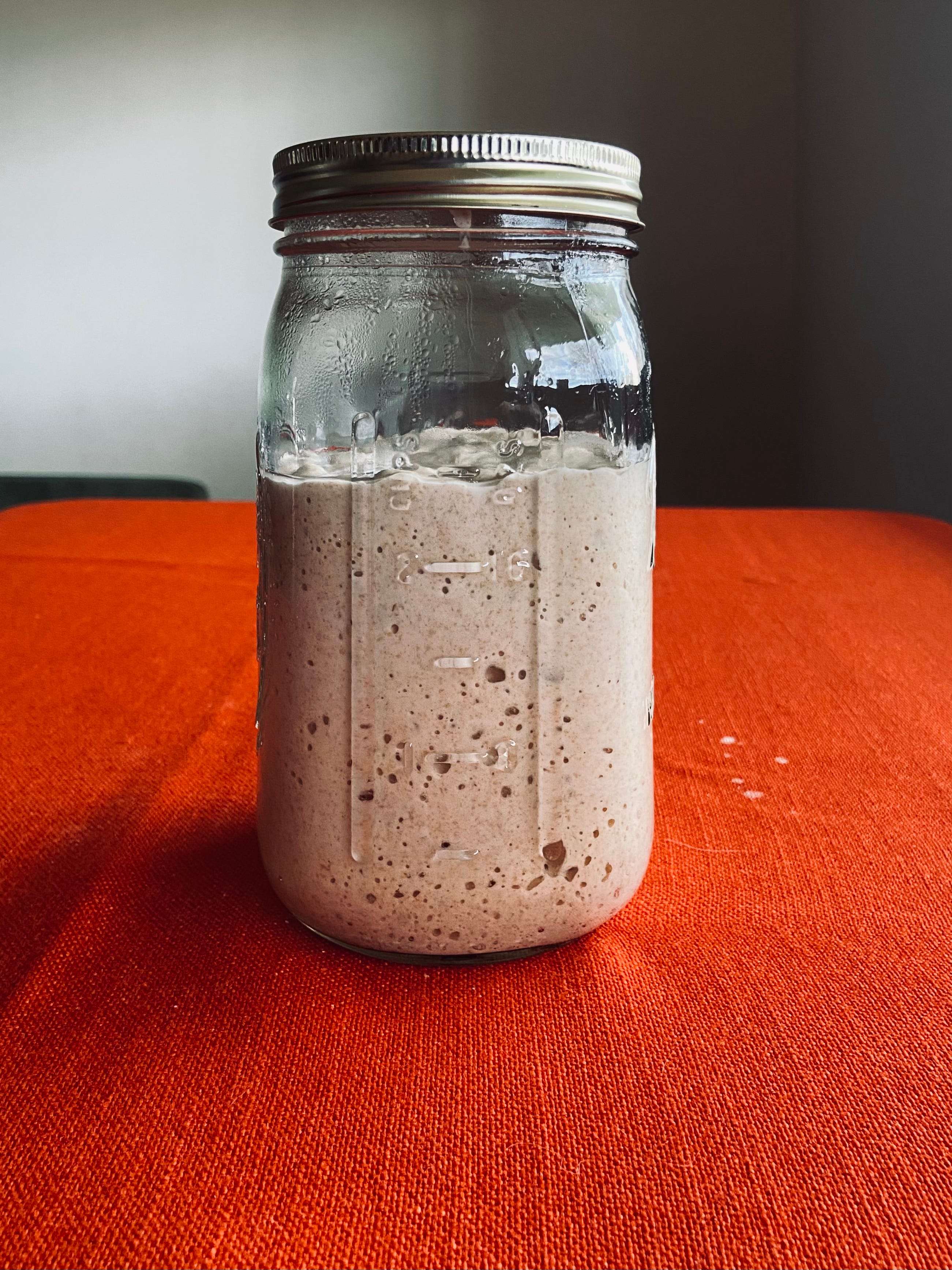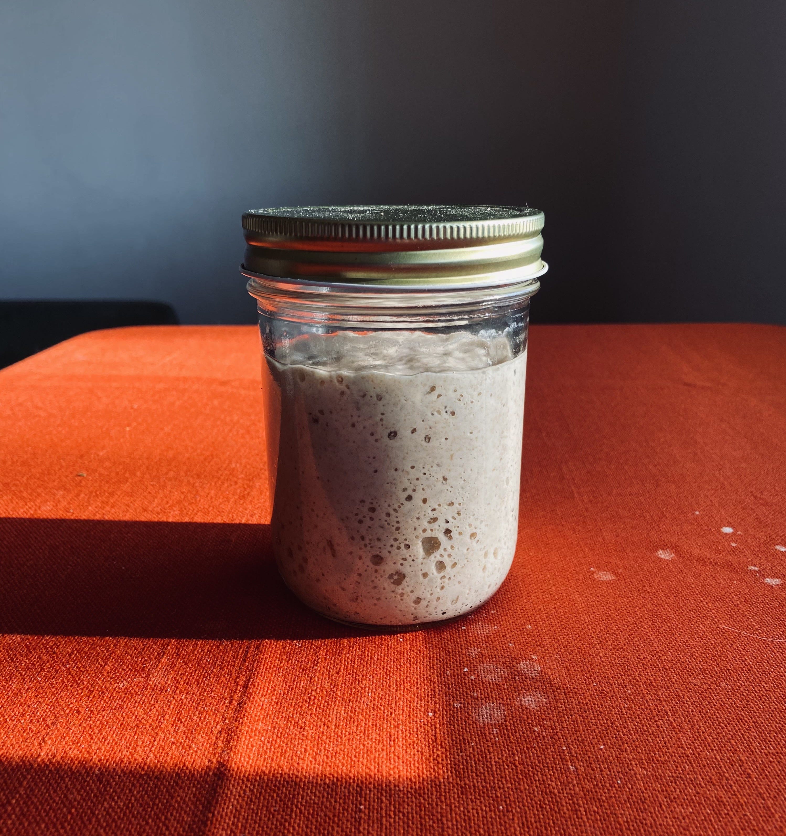 Taking care of a sourdough starter involves feeding it regularly and making sure it has a safe place to be. This includes a clean jar with a loose fitting lid.